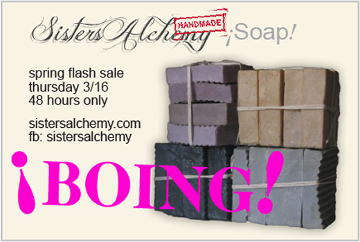 So you can be sure that when you’re buying from SistersAlchemy, you are buying all natural, handmade, soap bars. We know you’ll love them as much as we enjoy making them!